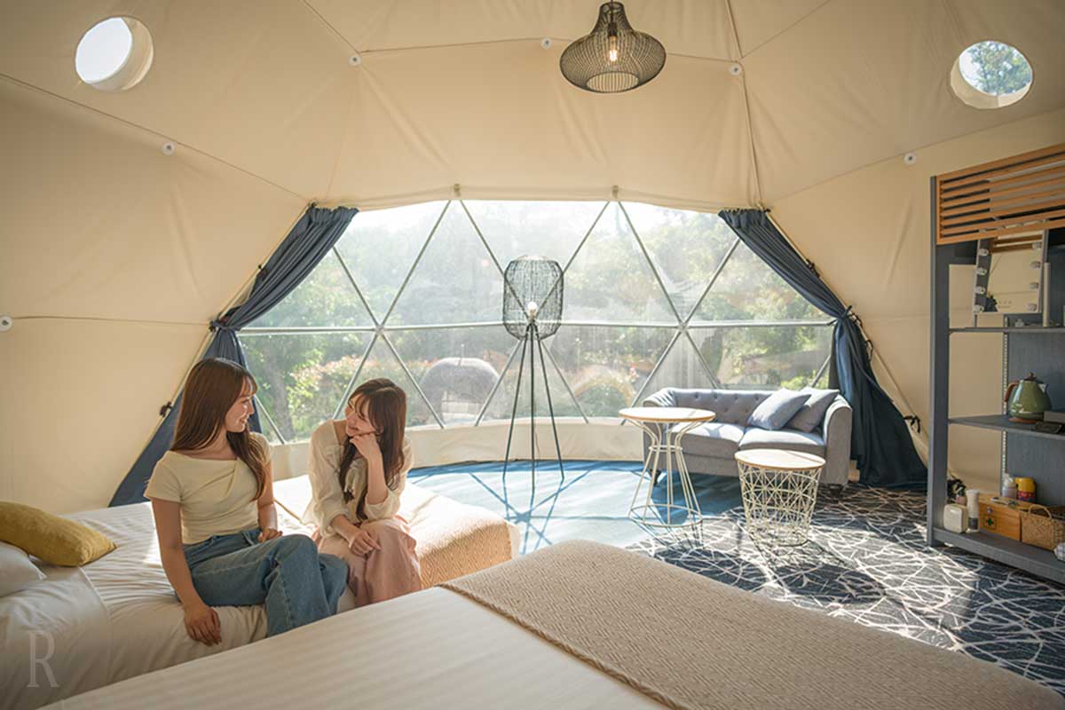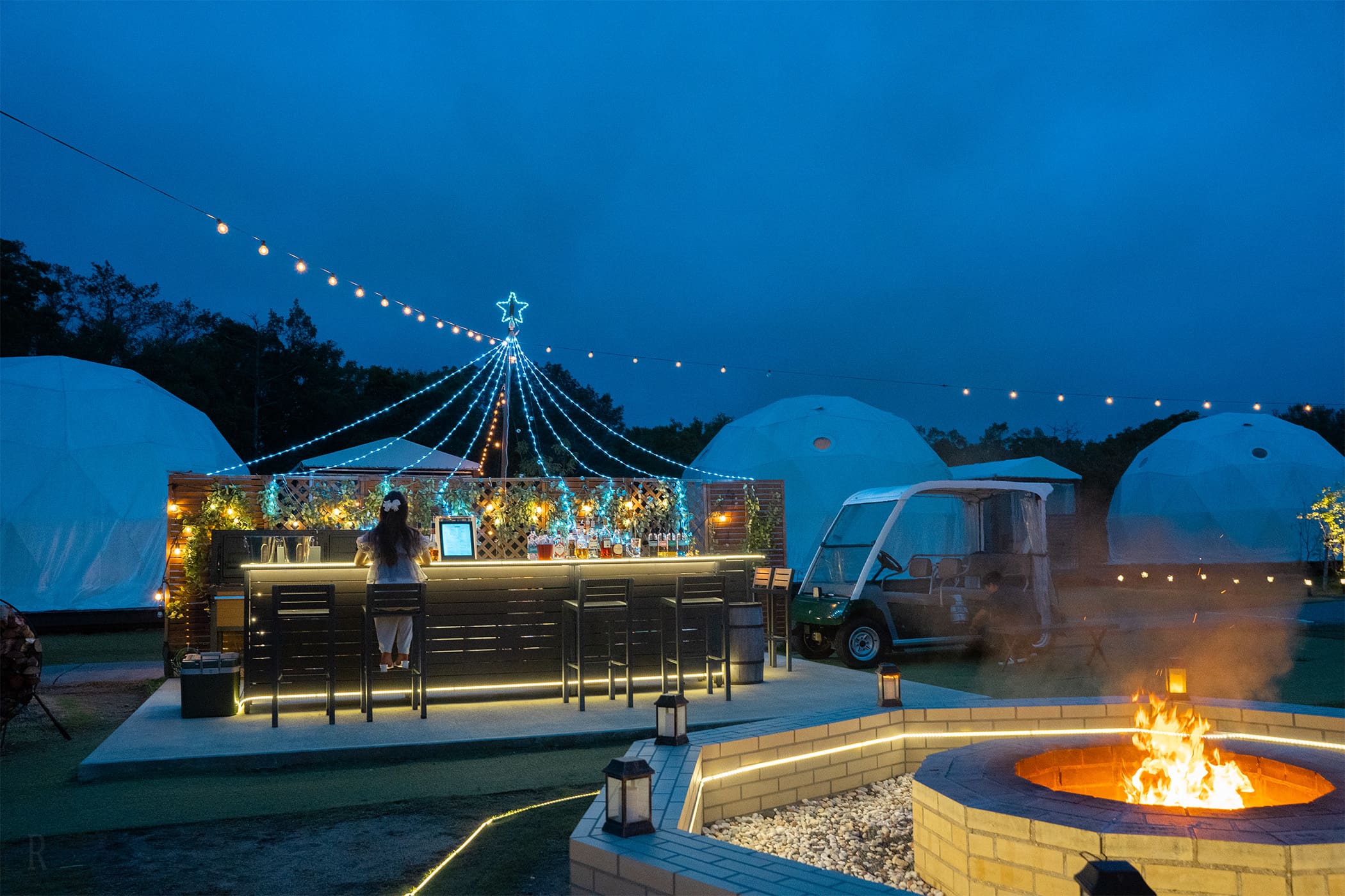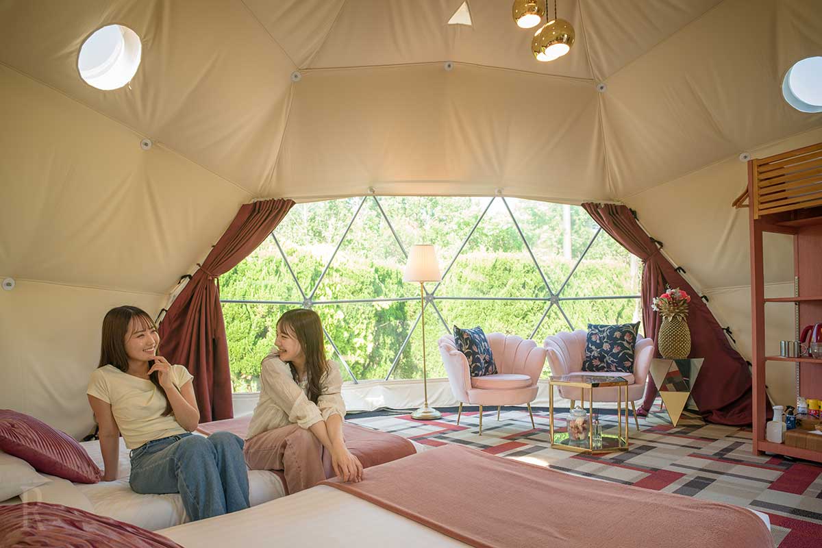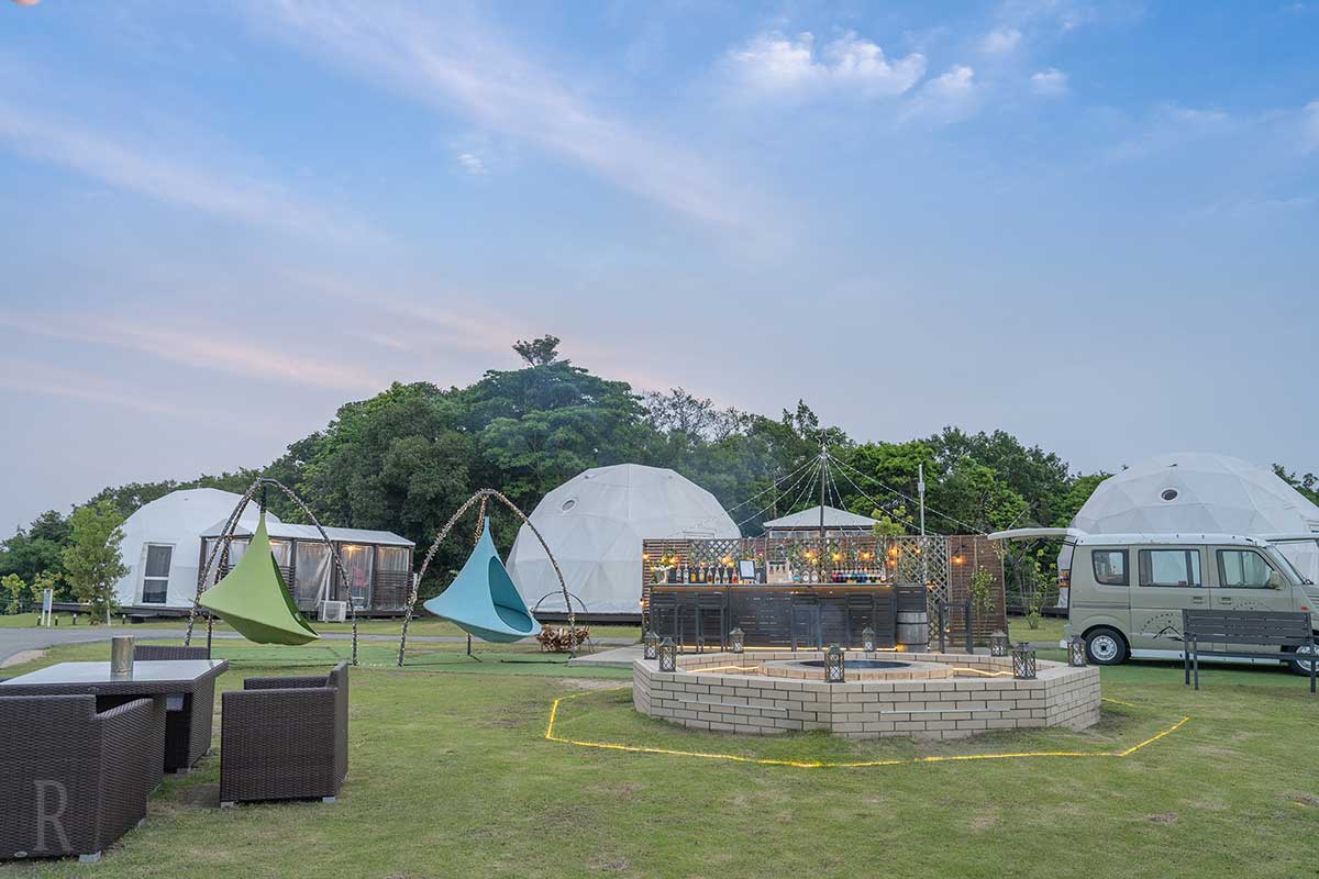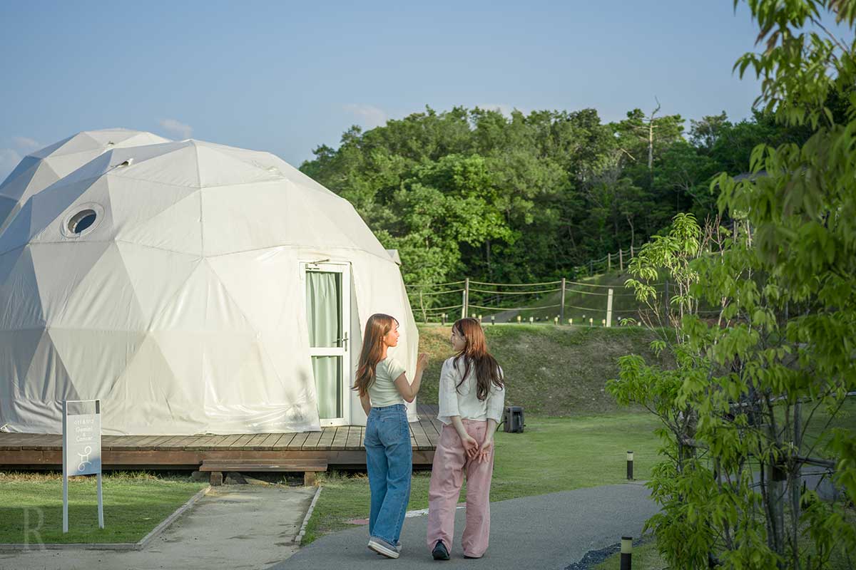 A glamping facility with large dome tents located in the Ise Kashikojima area, which is lined with