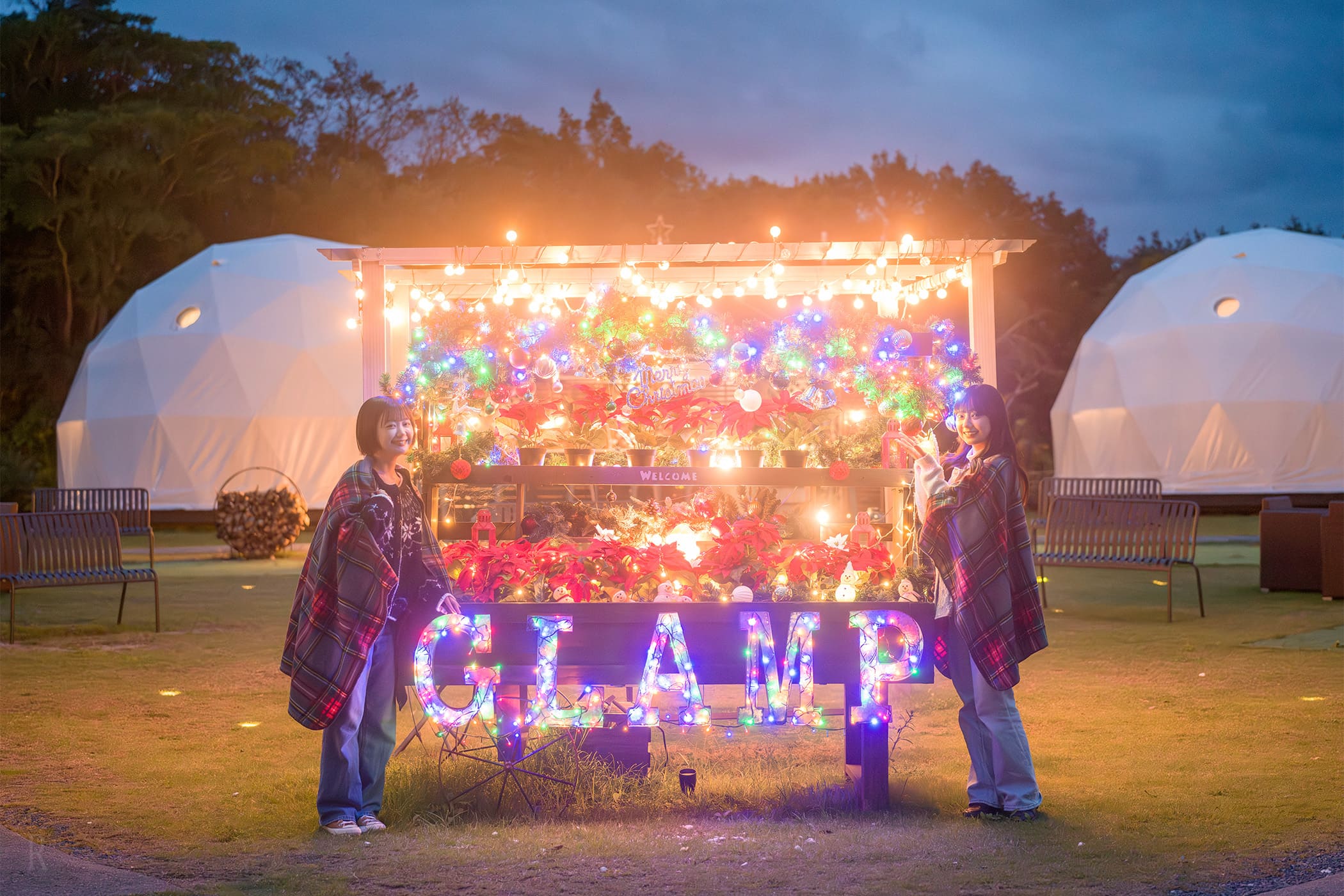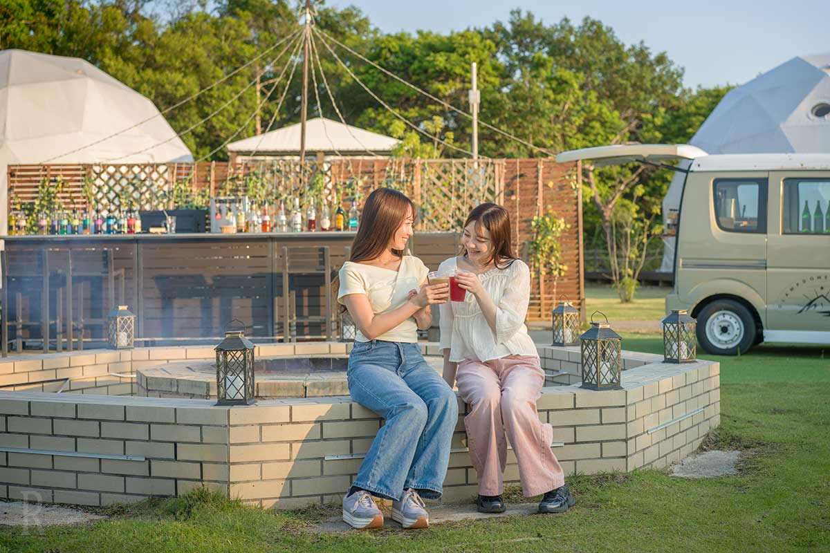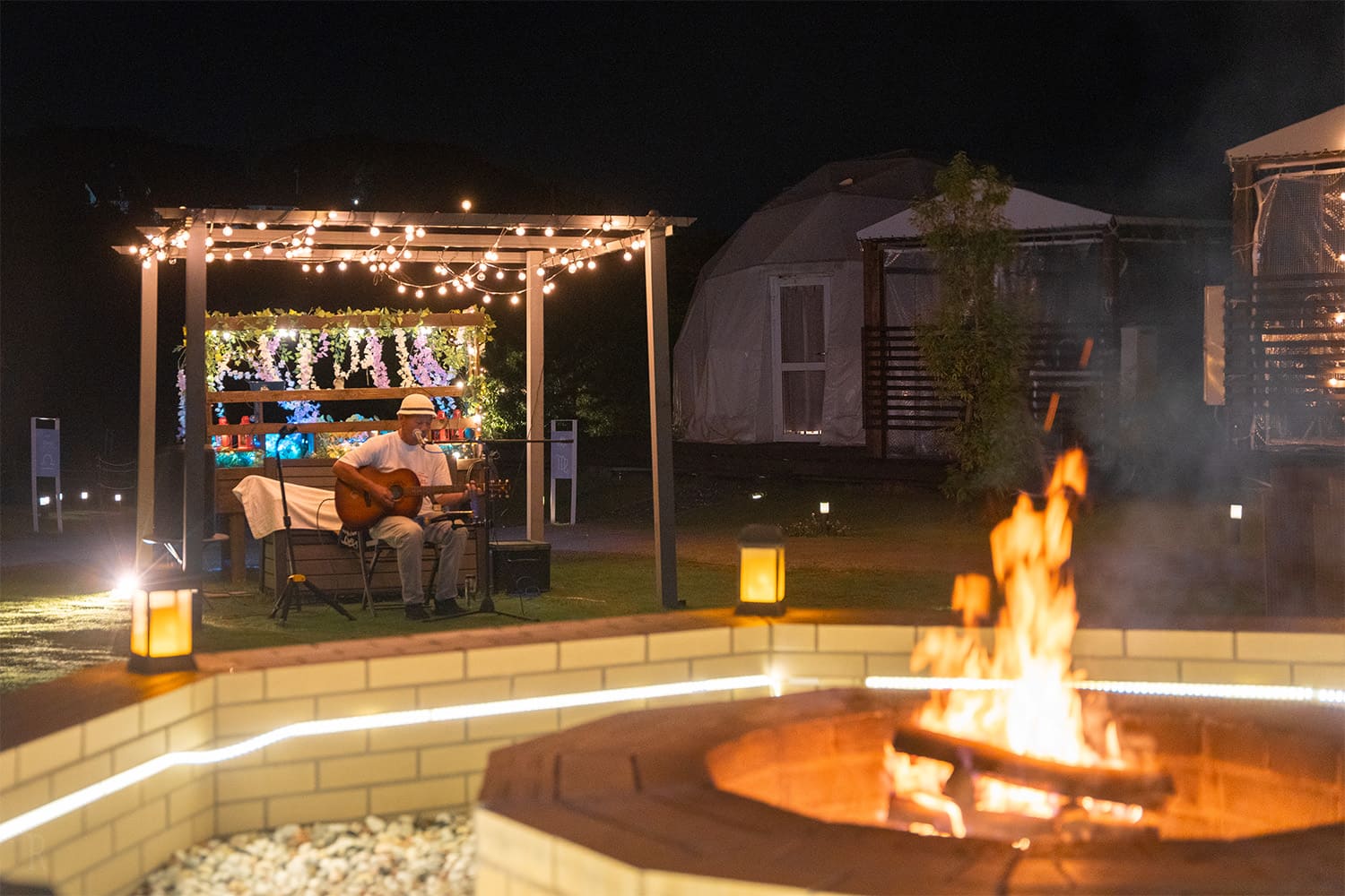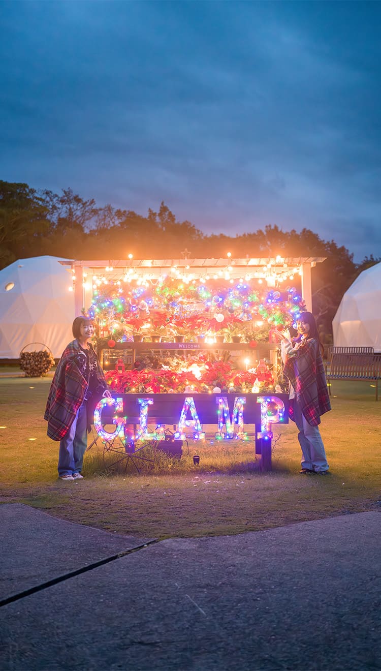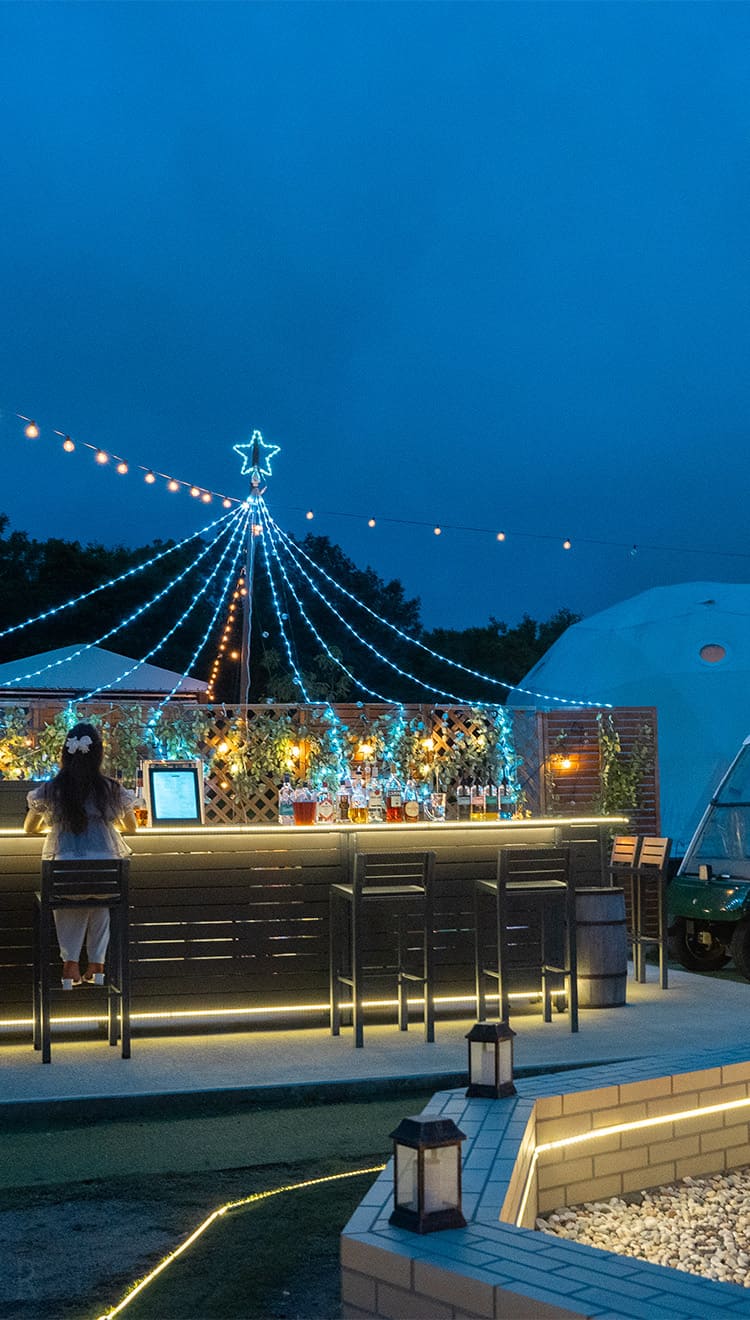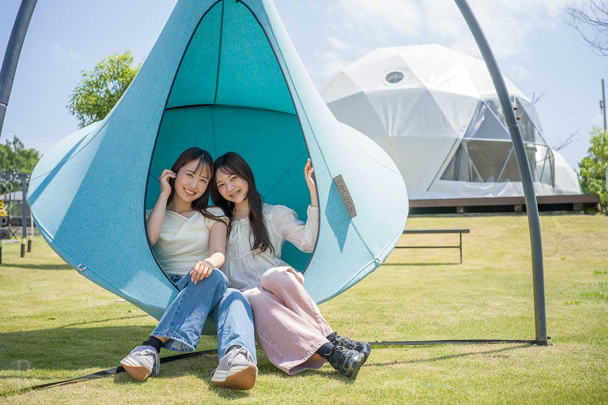 A glamping facility with large dome tents located in the Ise Kashikojima area, which is lined with