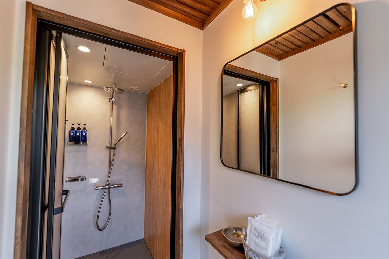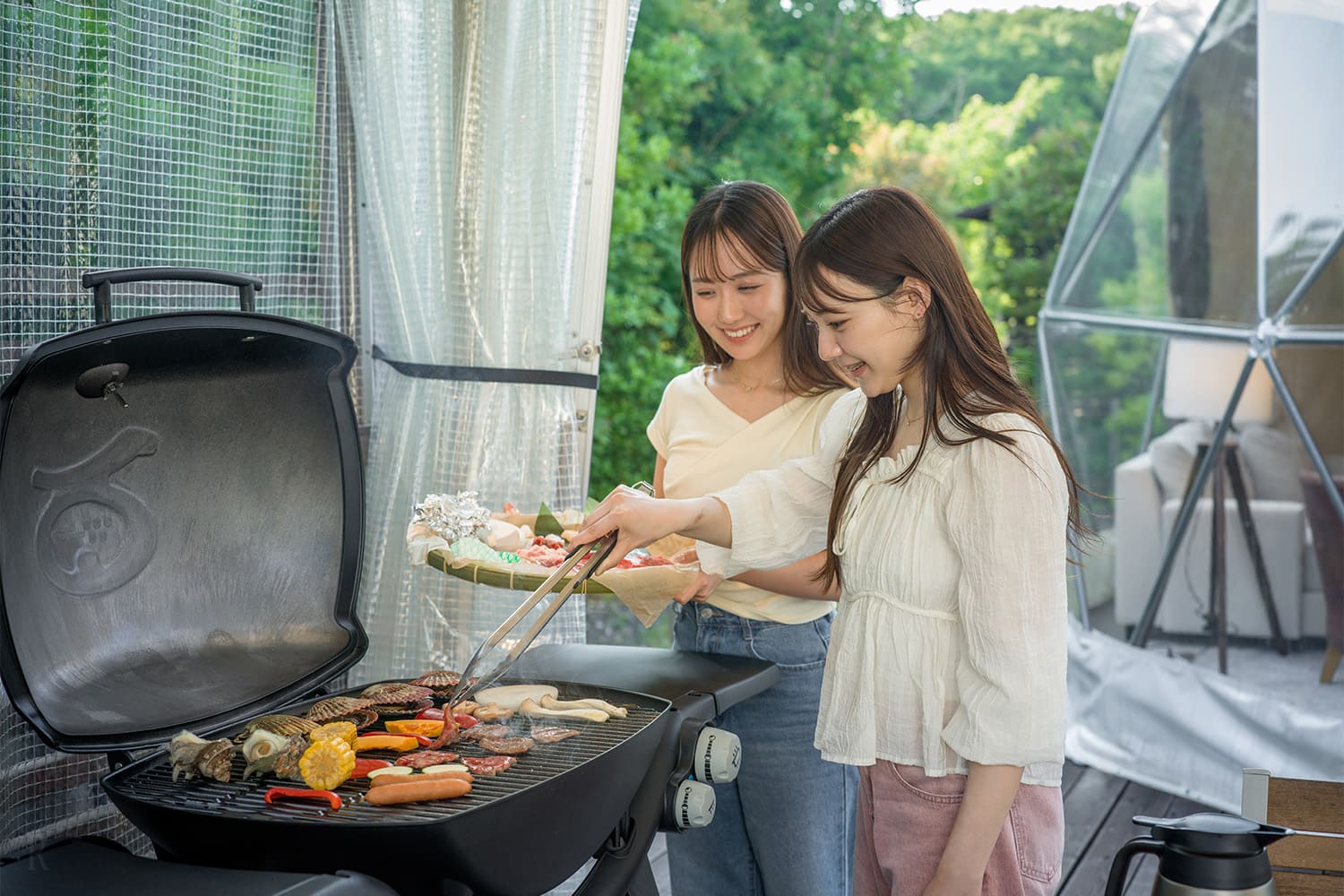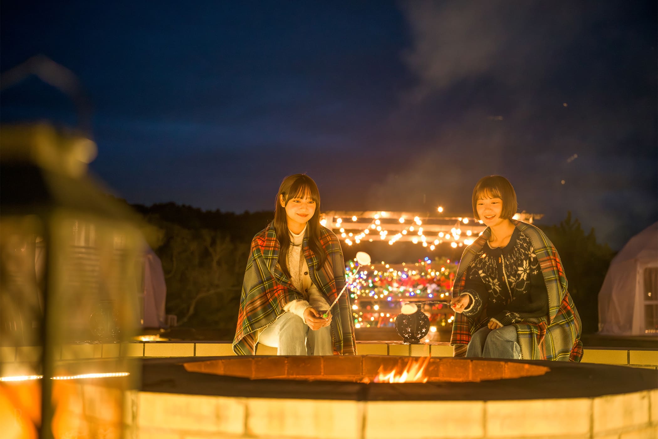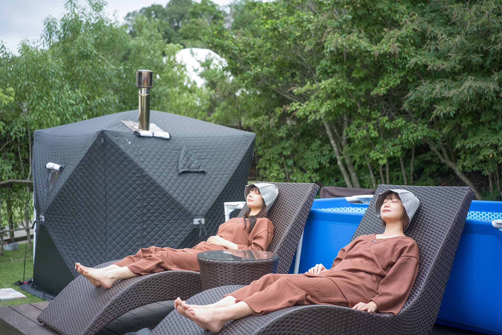 A glamping facility with large dome tents located in the Ise Kashikojima area, which is lined with